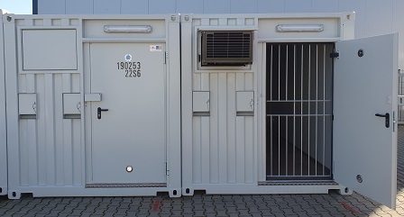 Portable Armory/Arms Room in a 20 ft ISO Certified Security Container; deployable by PLS, ship & train, walls are insulated and panelled with non-flammable material, 220v outlets, overhead lighting, circuit breaker box, outside junction box for external power source, climate control unit(A/C & dehumidifier) & electric heater.