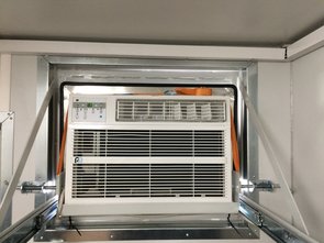 12,000BTU Air Conditioner with electric heater, easy set up to pace into operation and for stowage. 2 ea. additional wall mounted heating units.